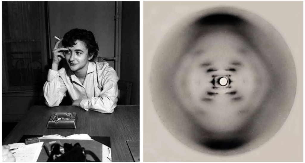 Rosalind Franklin 和 Maurice Wilkins 在伦敦的King's College进行X射线晶体学实验,通过照射DNA样本,获得了DNA的衍射图案。这些图像被称为X射线衍射图像,尤其是照片51,被认为是发现DNA双螺旋结构的关键证据。