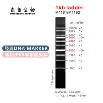 1kb Ladder是由10条双链线状DNA片段混合而成的DNA分子量标准(DNA Marker/ DNA Ladder),适用于确定500 bp至10 kb的线性双链DNA片段大小,指示带为2000 bp和5000 bp,便于电泳后观察。每条带都通过严格的物理定量可用于测定目的片段的大小和含量。