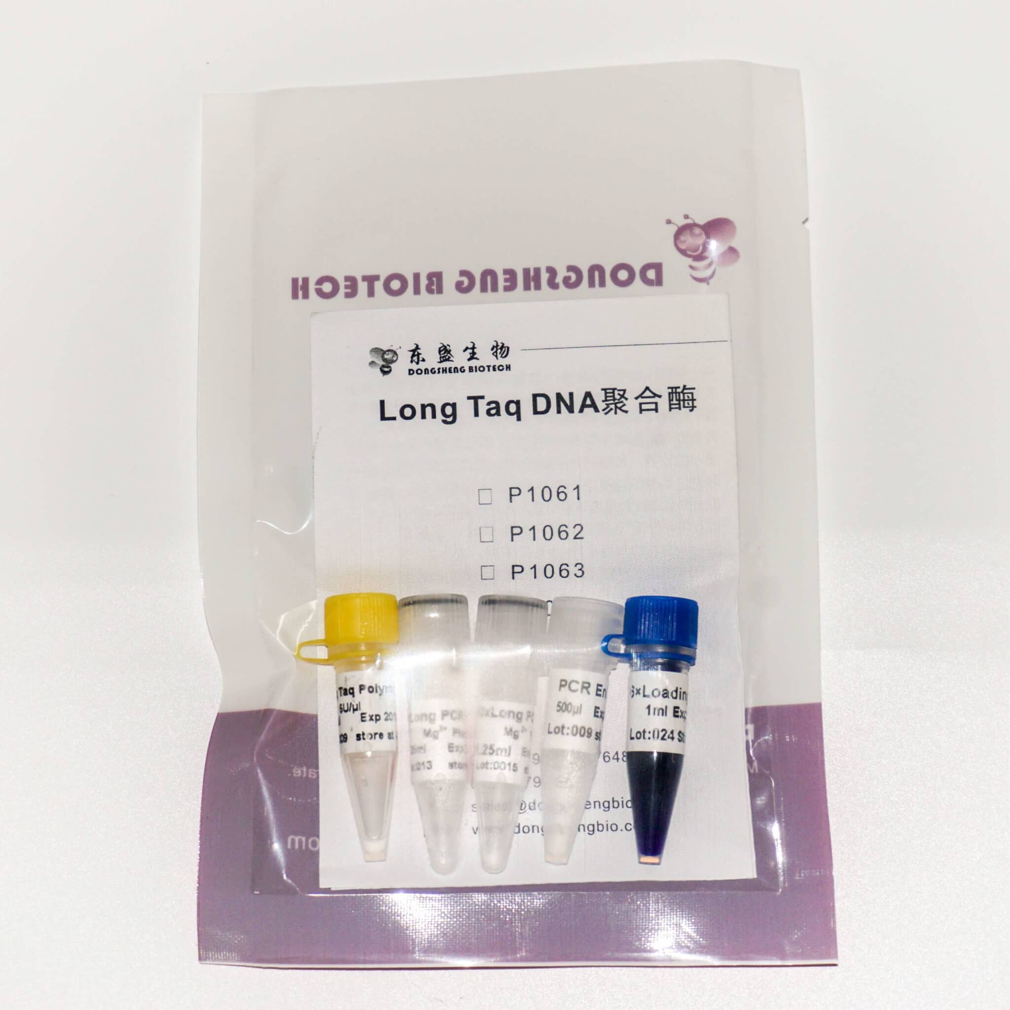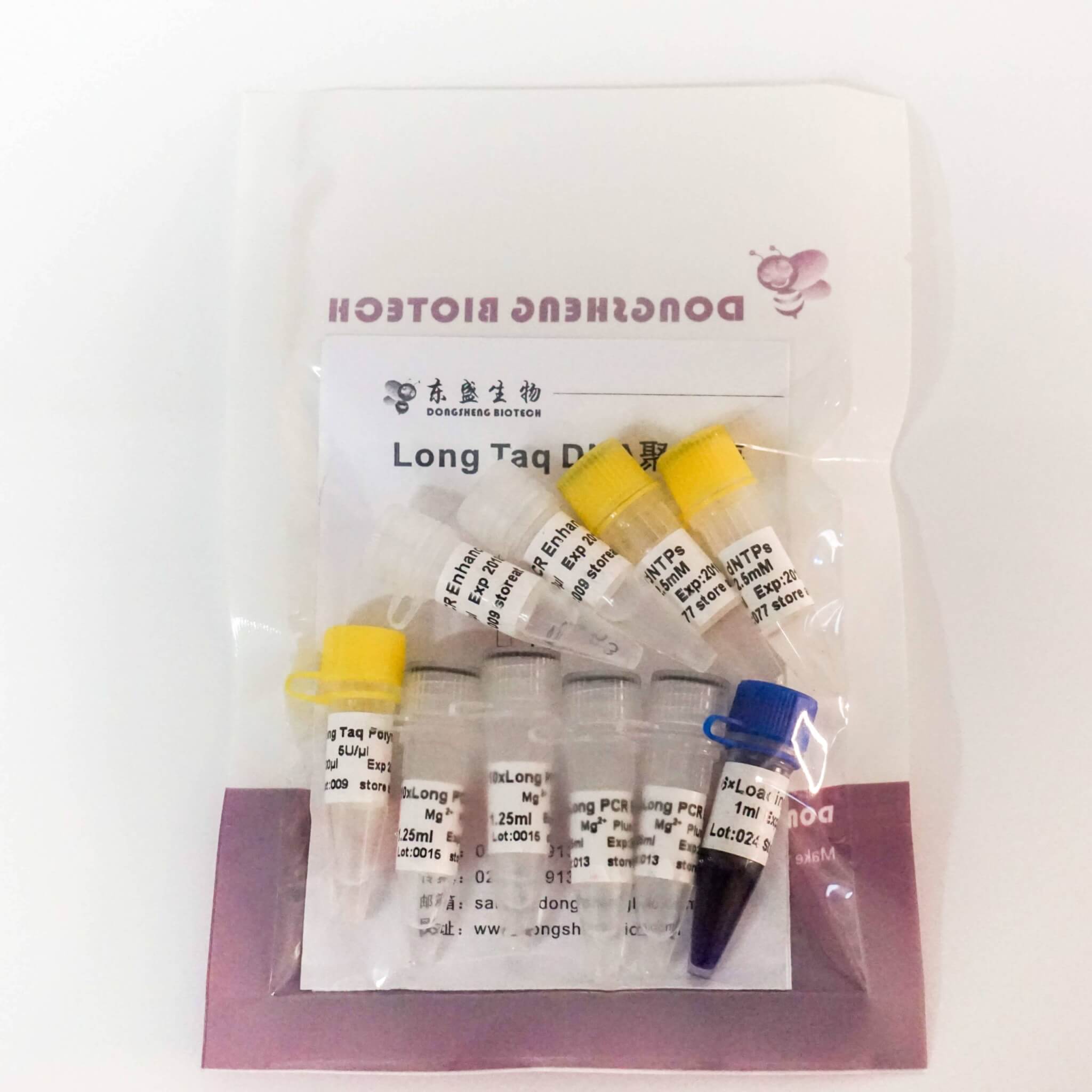 Long Taq DNA Polymerase是专门用于扩增长片段的嗜热DNA聚合酶,其保真性是普通Taq DNA聚合酶的3倍左右。扩增片段的长度可达20 kb(简单模板)。在扩增复杂模板(如GC-rich或重复序列)时,Long Taq DNA Polymerase的扩增效率显著高于Taq DNA聚合酶。因此Long Taq DNA Polymerase适合>5kb的DNA片段及复杂模板的扩增。延伸速度为20s/kb(70~75℃,简单模板可达5s/kb)。扩增产物具有两种末端:平末端与3'-dA。