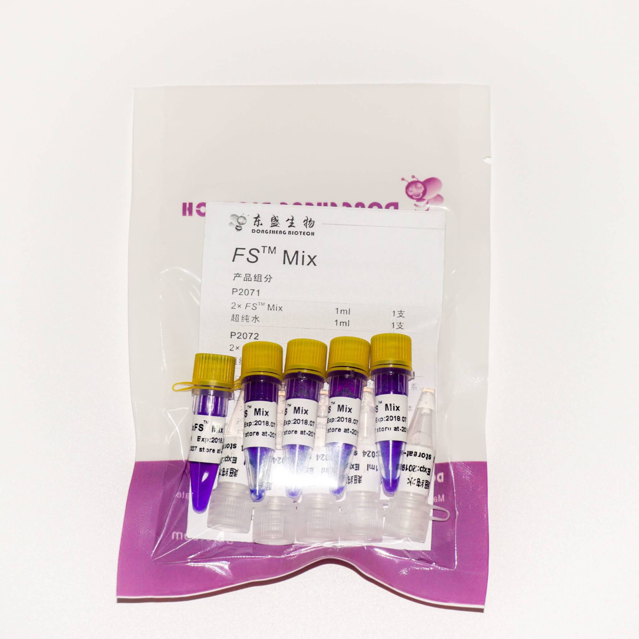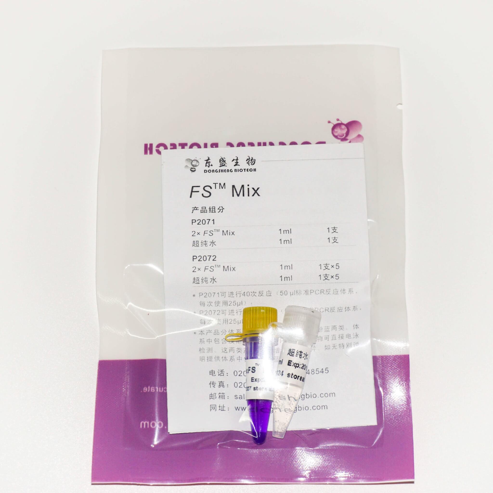 FS™ Mix是2×浓缩的快速高效PCR预混合溶液,含有FS™ Taq DNA聚合酶、dNTPs、缓冲液等PCR扩增必需组分(模板与引物除外)。使用时,仅需在扩增体系中加入模板和引物即可进行PCR,大大简化操作过程,缩短操作时间,降低污染(加样次数减少)。FS™ Mix使用xpj.com官网生物研发的FS™ Taq DNA聚合酶,显著提升扩增效率,缩短扩增时间。扩增产物具有3'-dA突出端,可直接用于TA克隆。